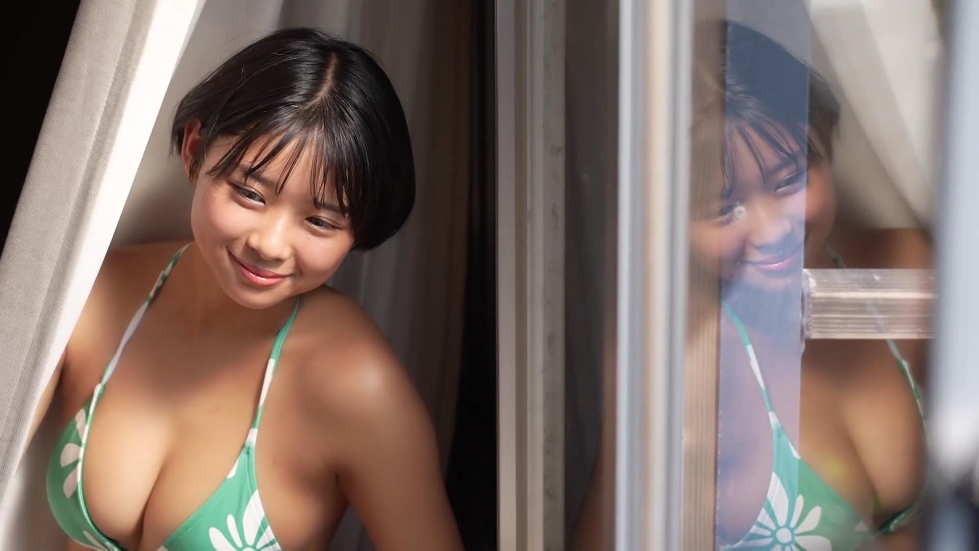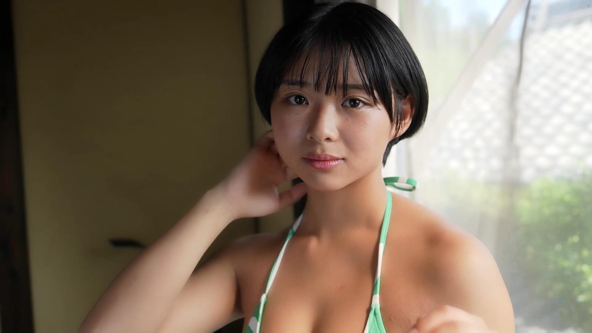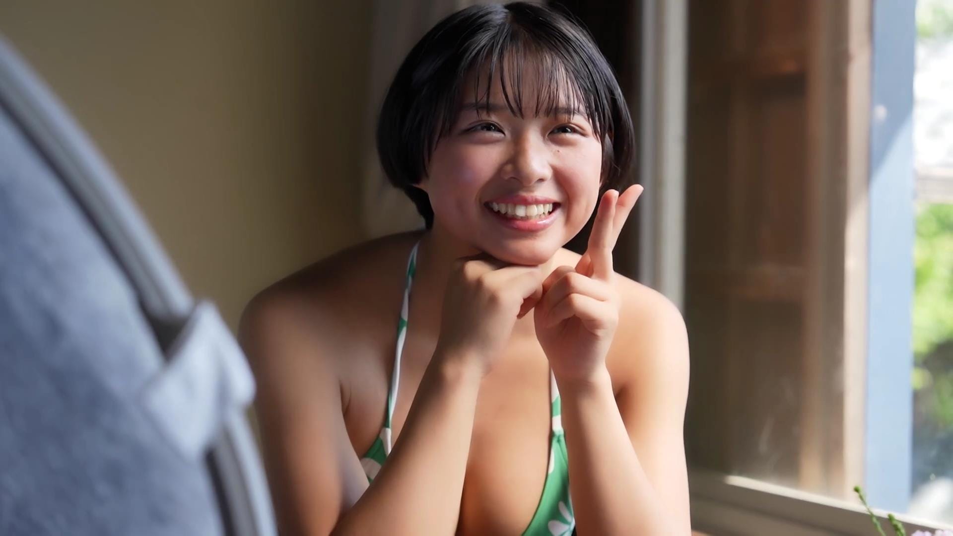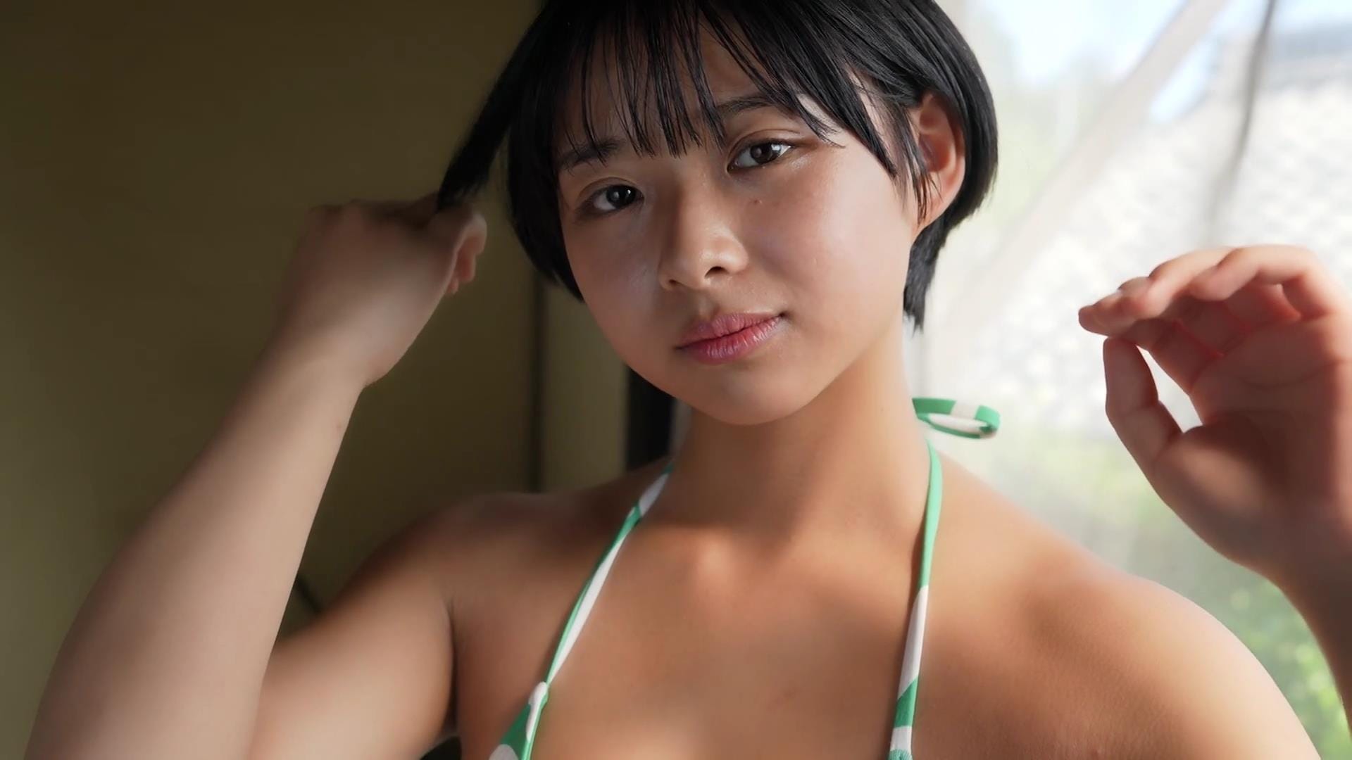 その爽やかな笑顔を見ているだけで、どこかノスタルジックな気分にさせてくれる桑島海空。話題のショートカット美女が清々しく、そして大胆に魅せる姿は、まさに「令和のアグネス・ラム」と称されるにふさわしい。彼女のファースト写真集からその魅力をお届けします。