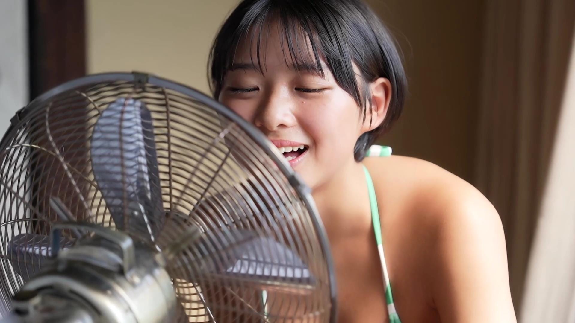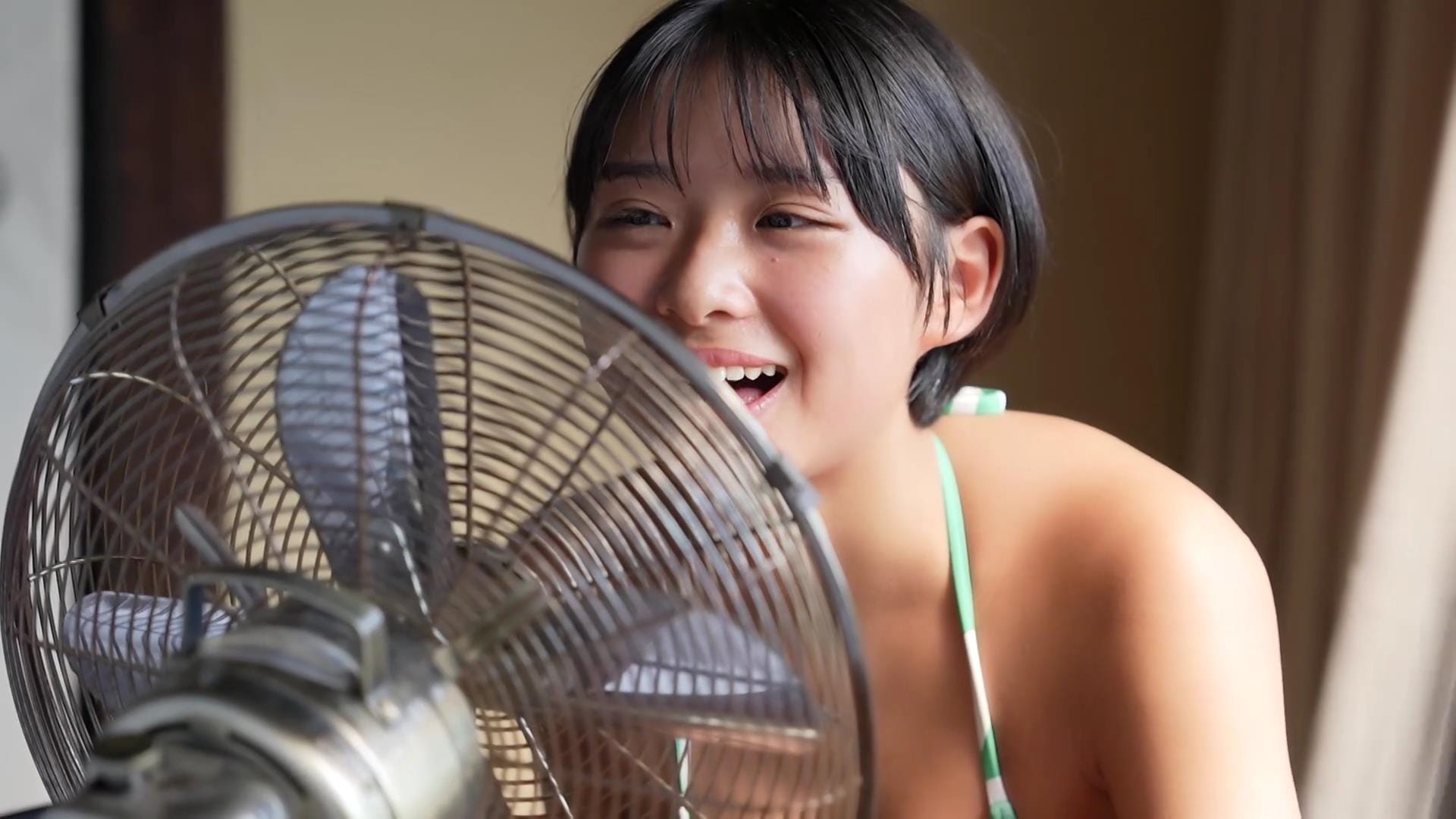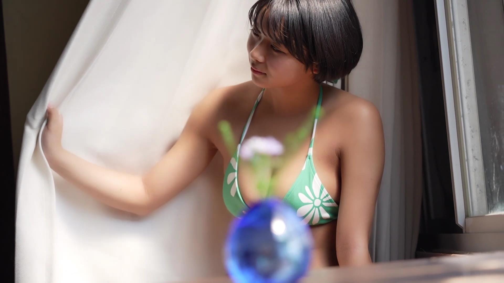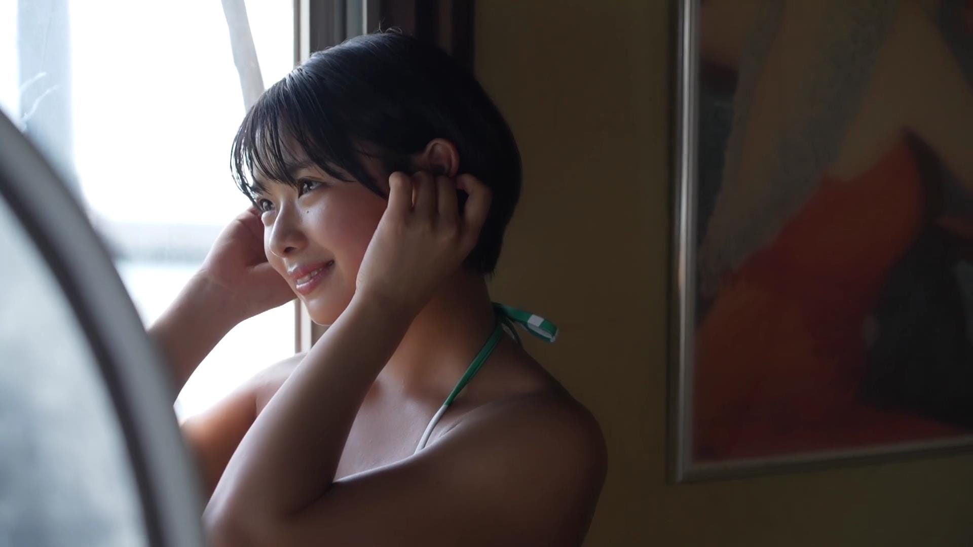 その爽やかな笑顔を見ているだけで、どこかノスタルジックな気分にさせてくれる桑島海空。話題のショートカット美女が清々しく、そして大胆に魅せる姿は、まさに「令和のアグネス・ラム」と称されるにふさわしい。彼女のファースト写真集からその魅力をお届けします。