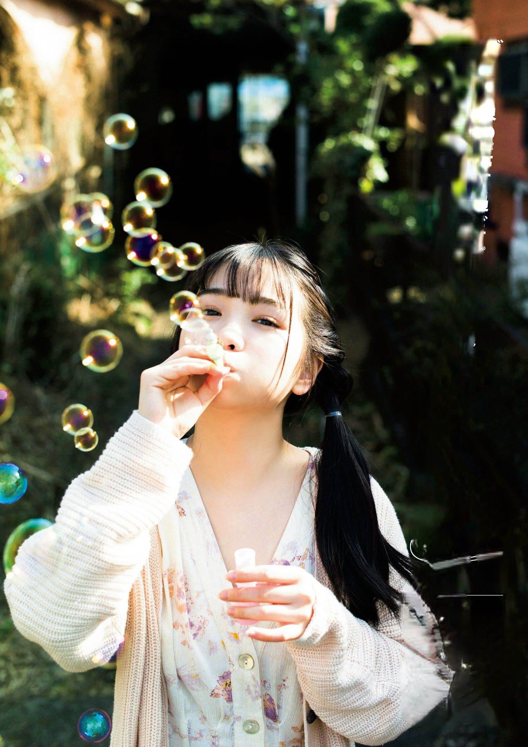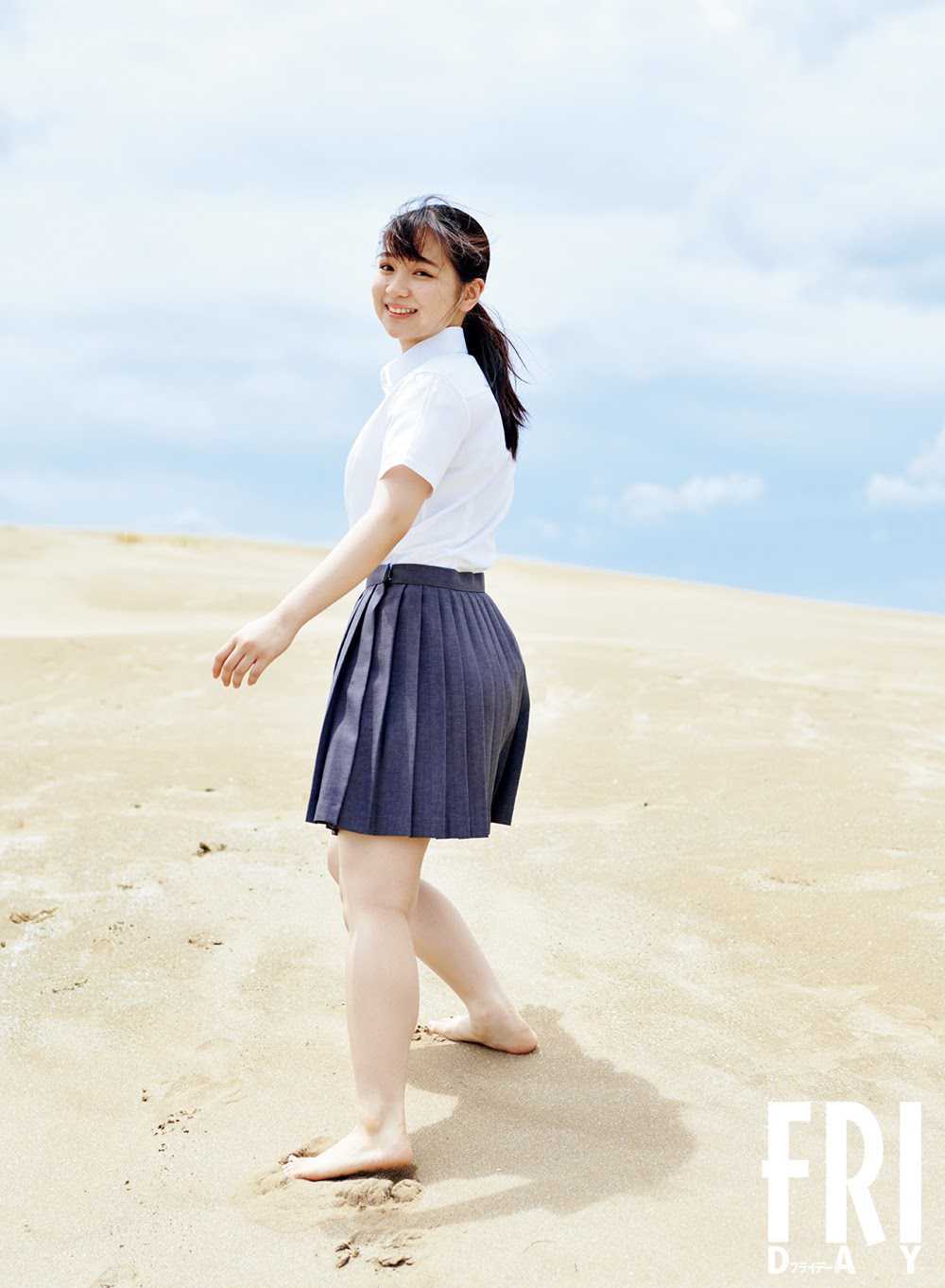 – 長いポニーテールで少女らしさをアピール。