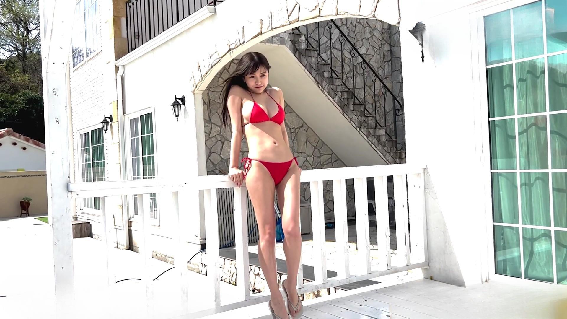 この赤い水着は、彼女の肌の色合いに完璧にマッチし、その存在感を引き立てています。