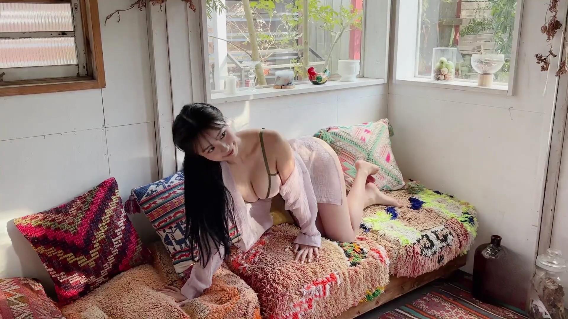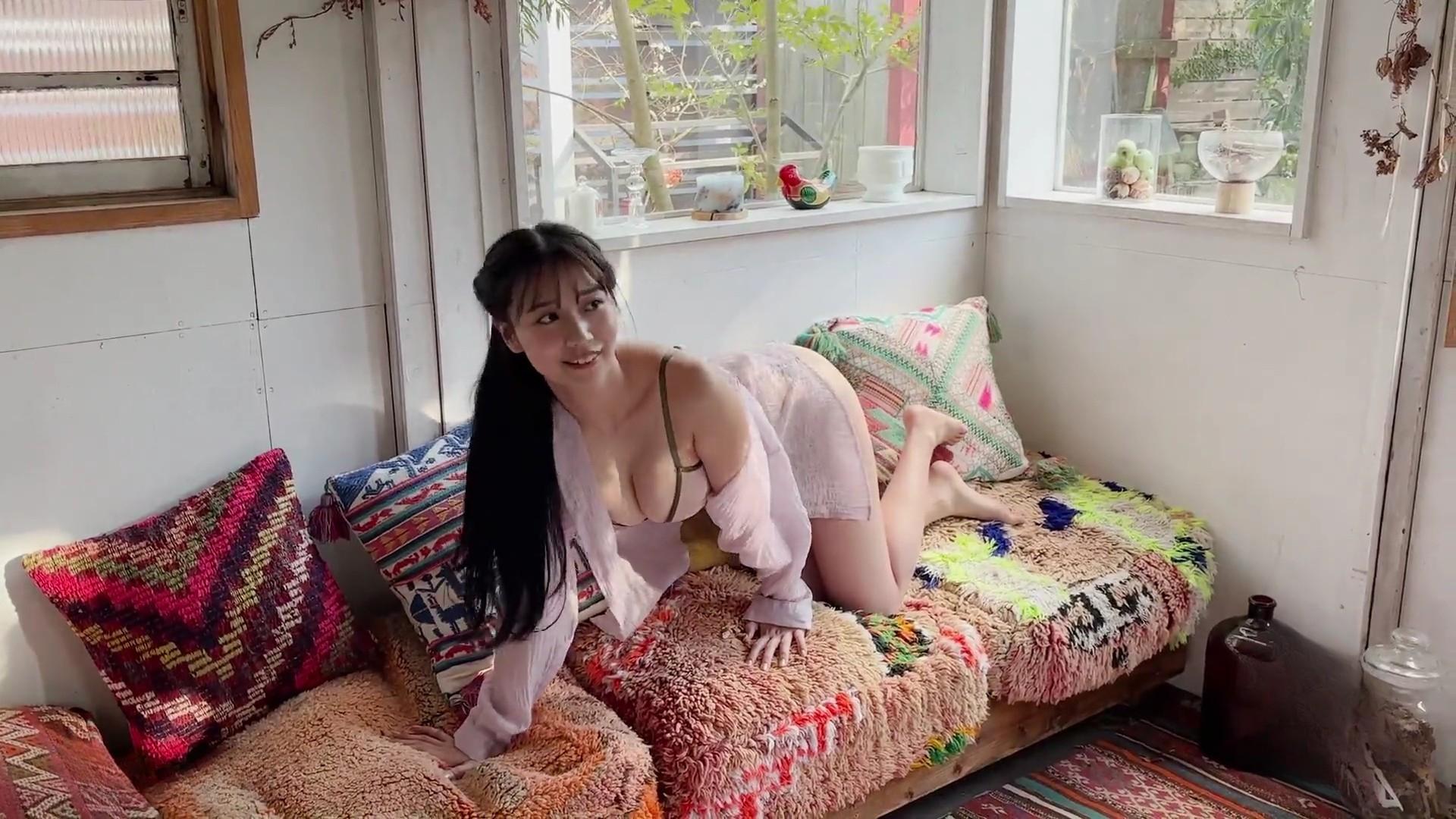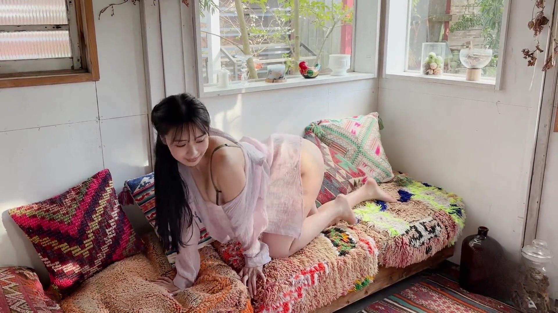 – 初グラビアで注目を集める存在感のある黒髪ロングと笑顔。