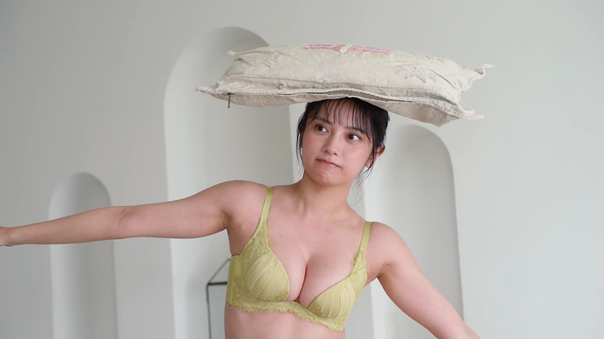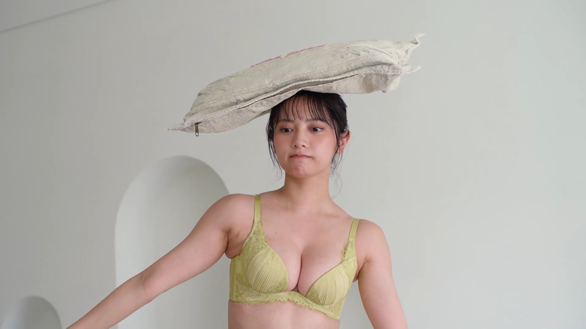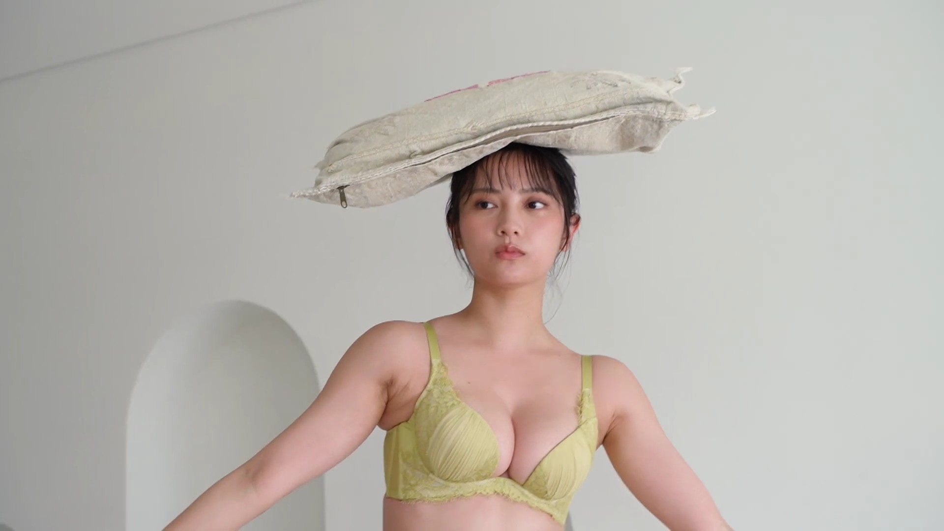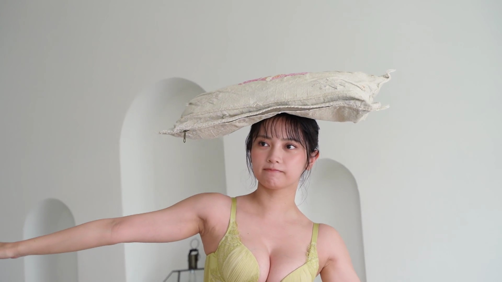 – ビスチェ風の白いランジェリー撮影に挑戦