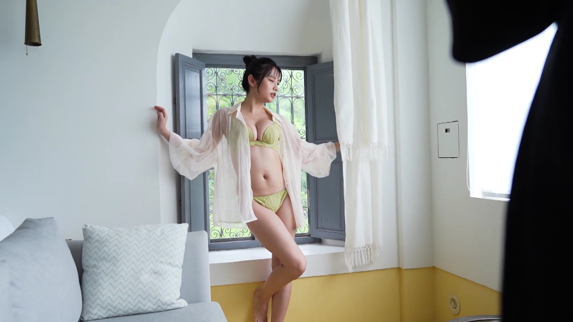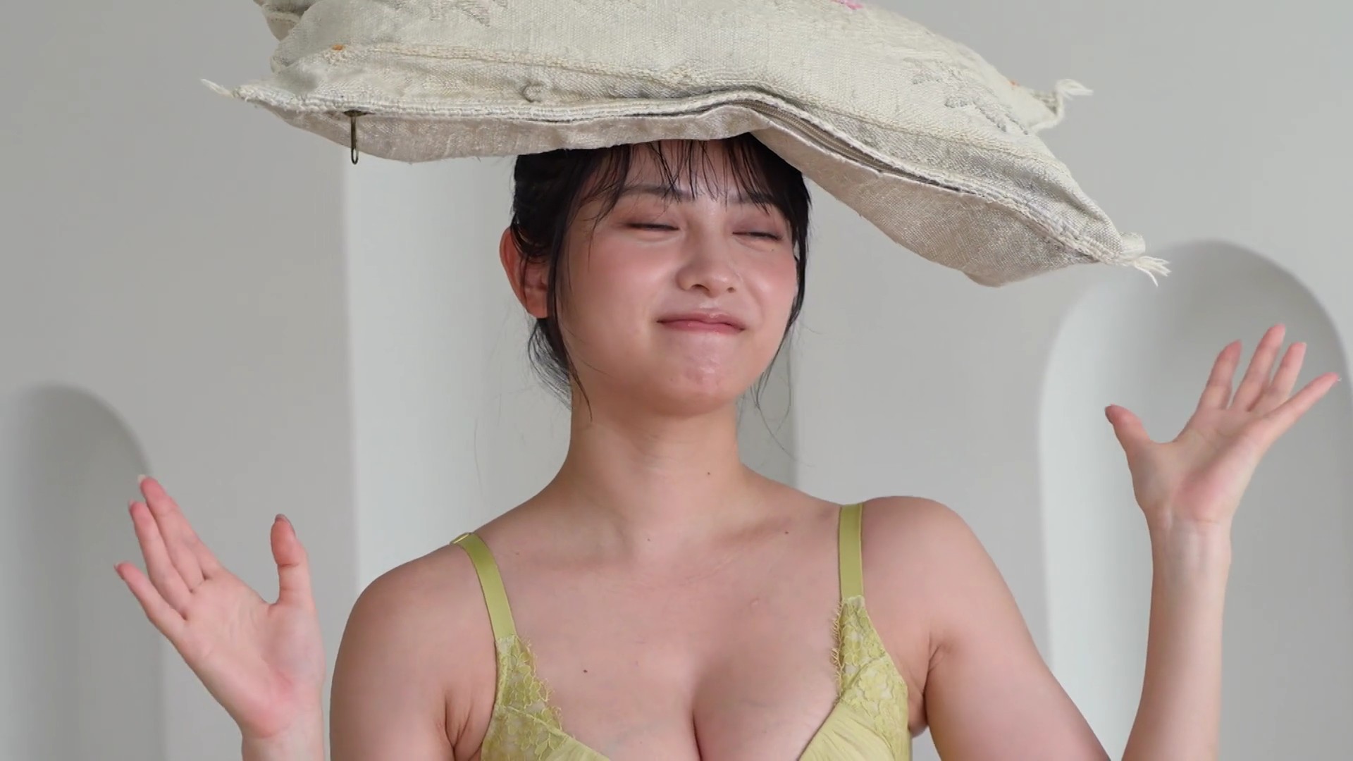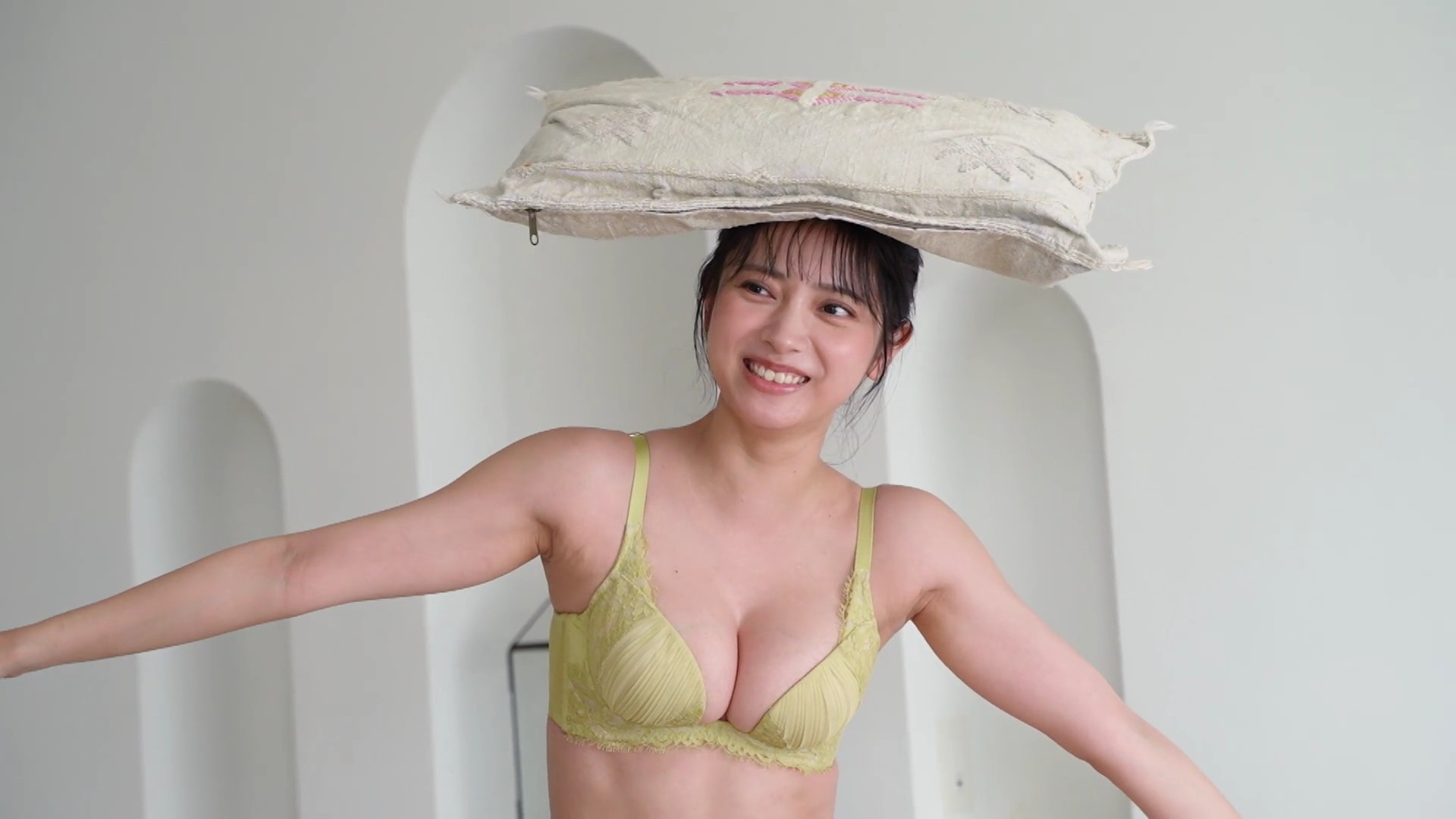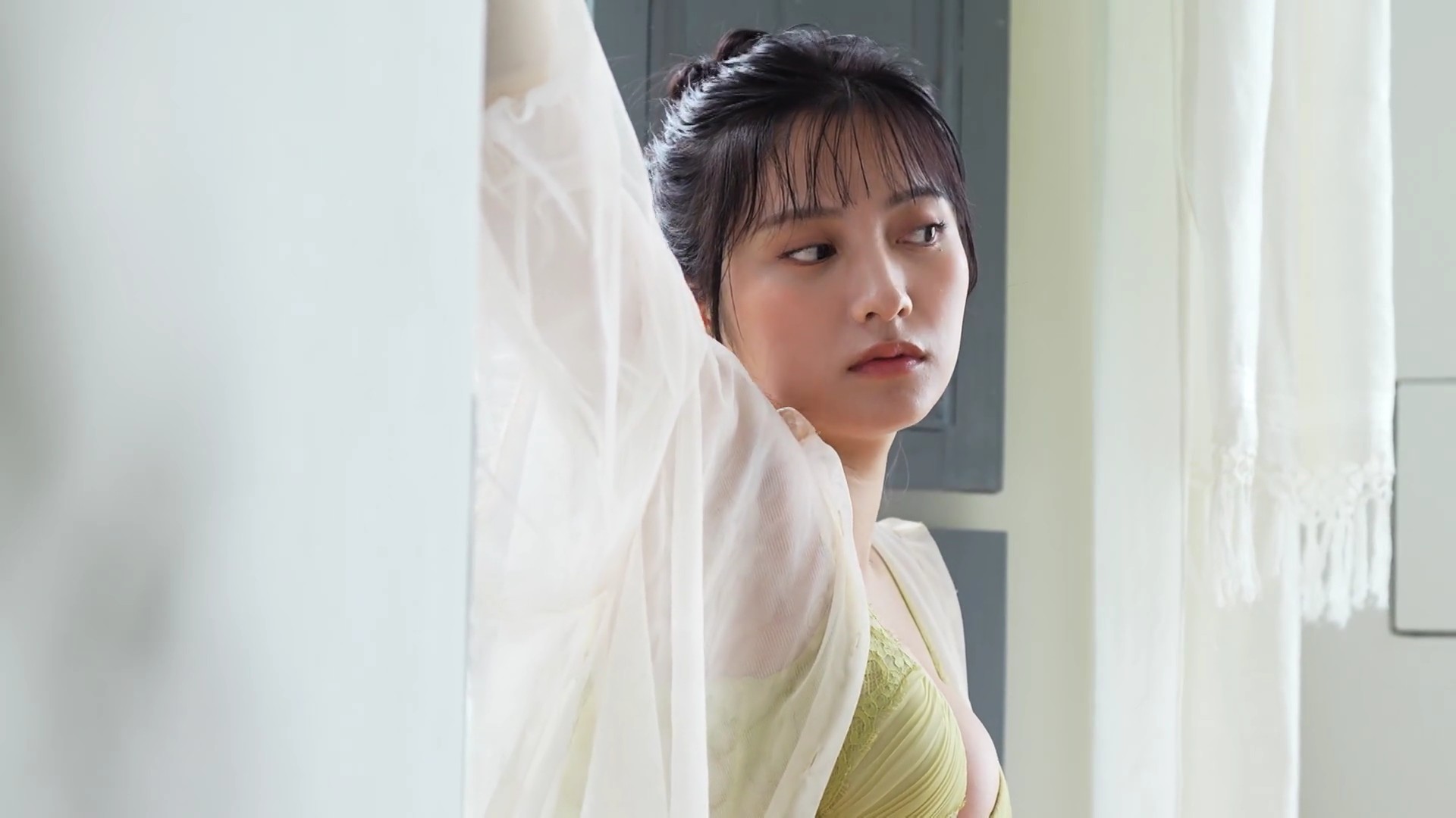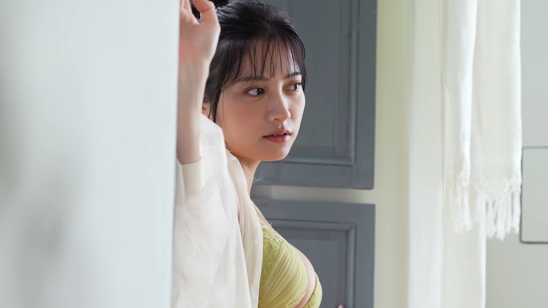 – ビスチェ風の白いランジェリー撮影に挑戦