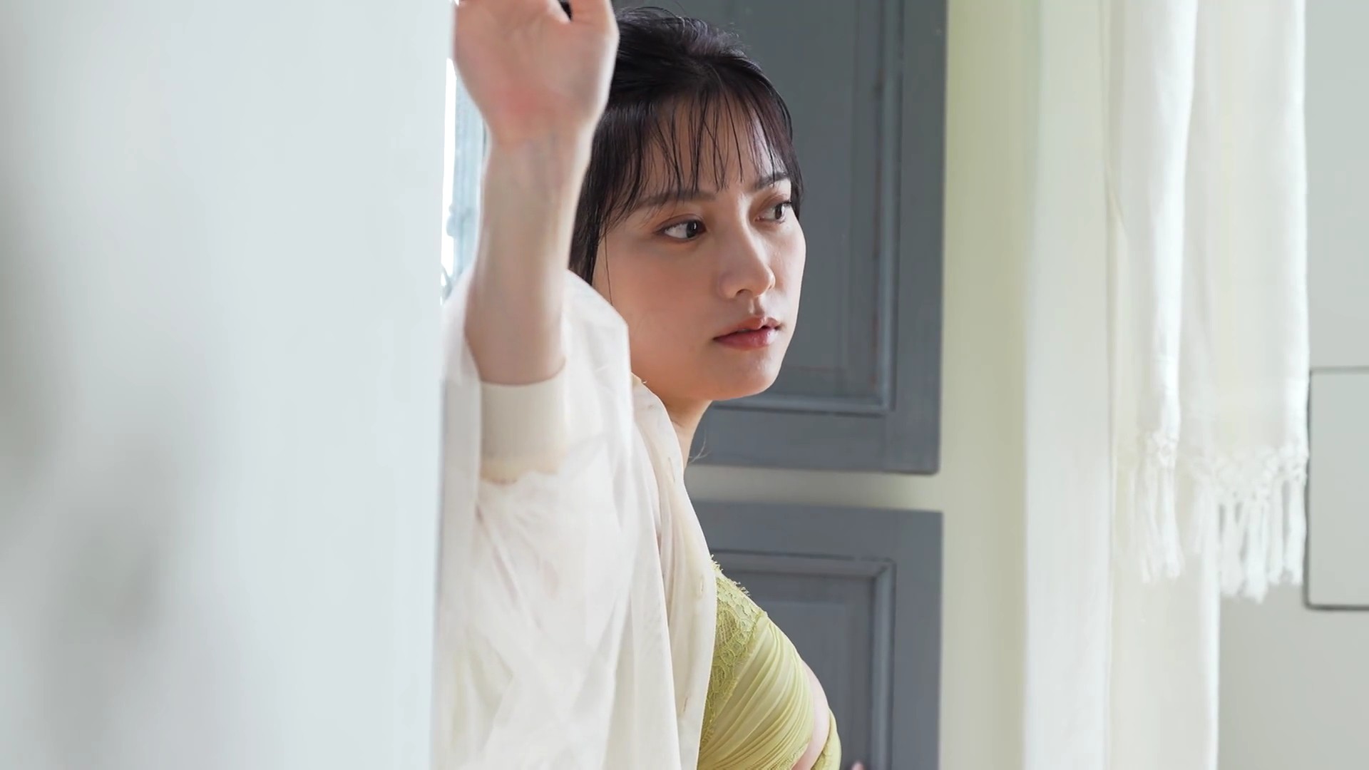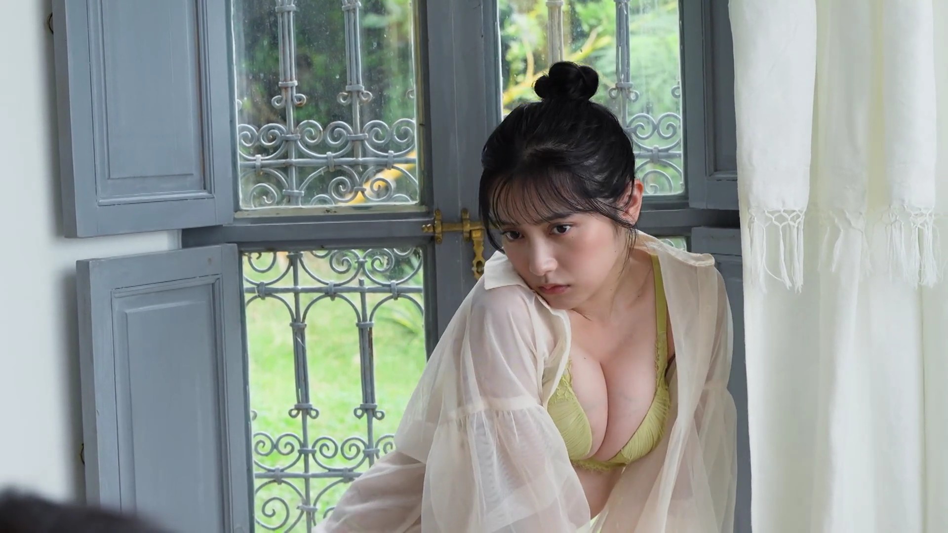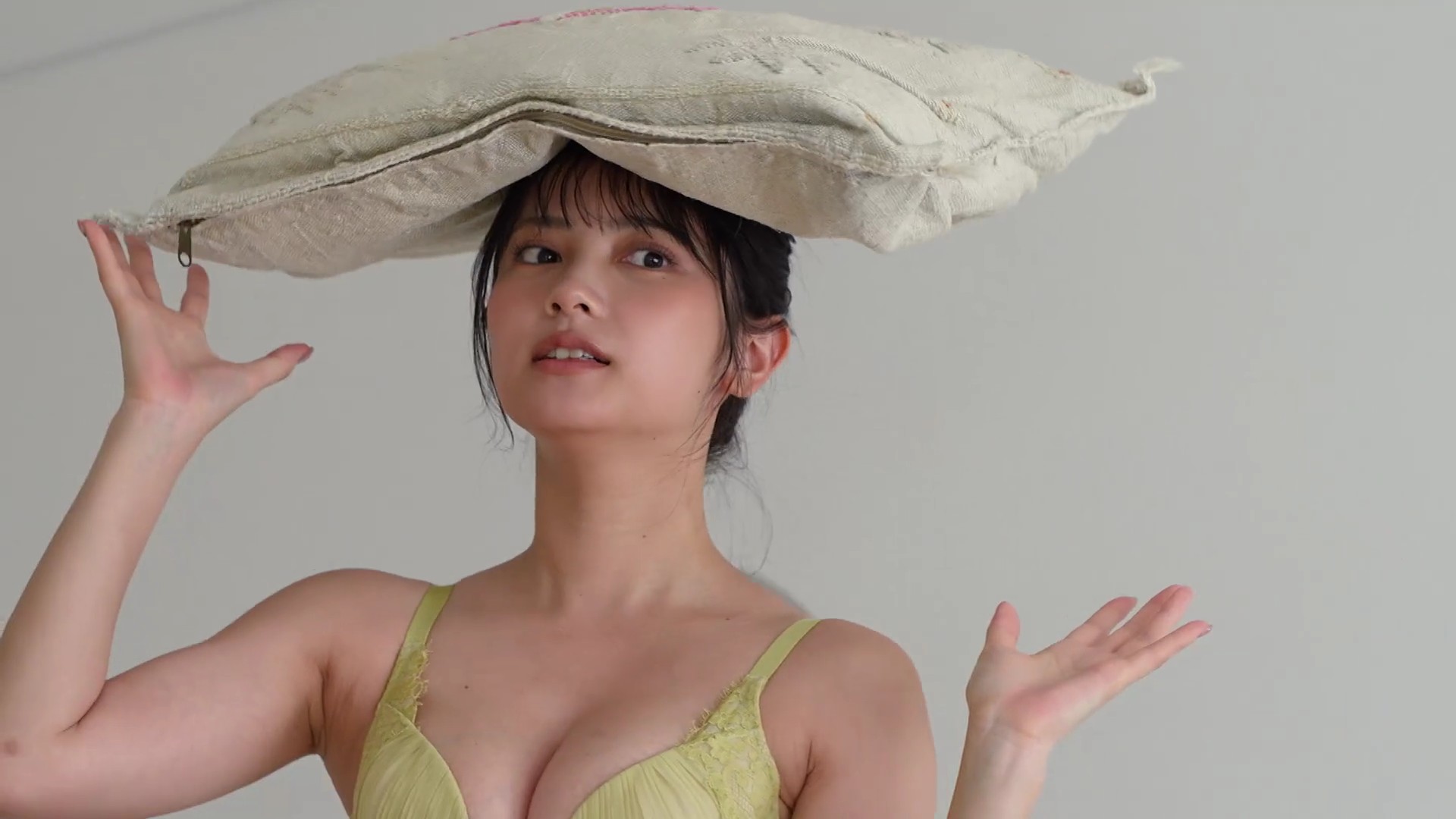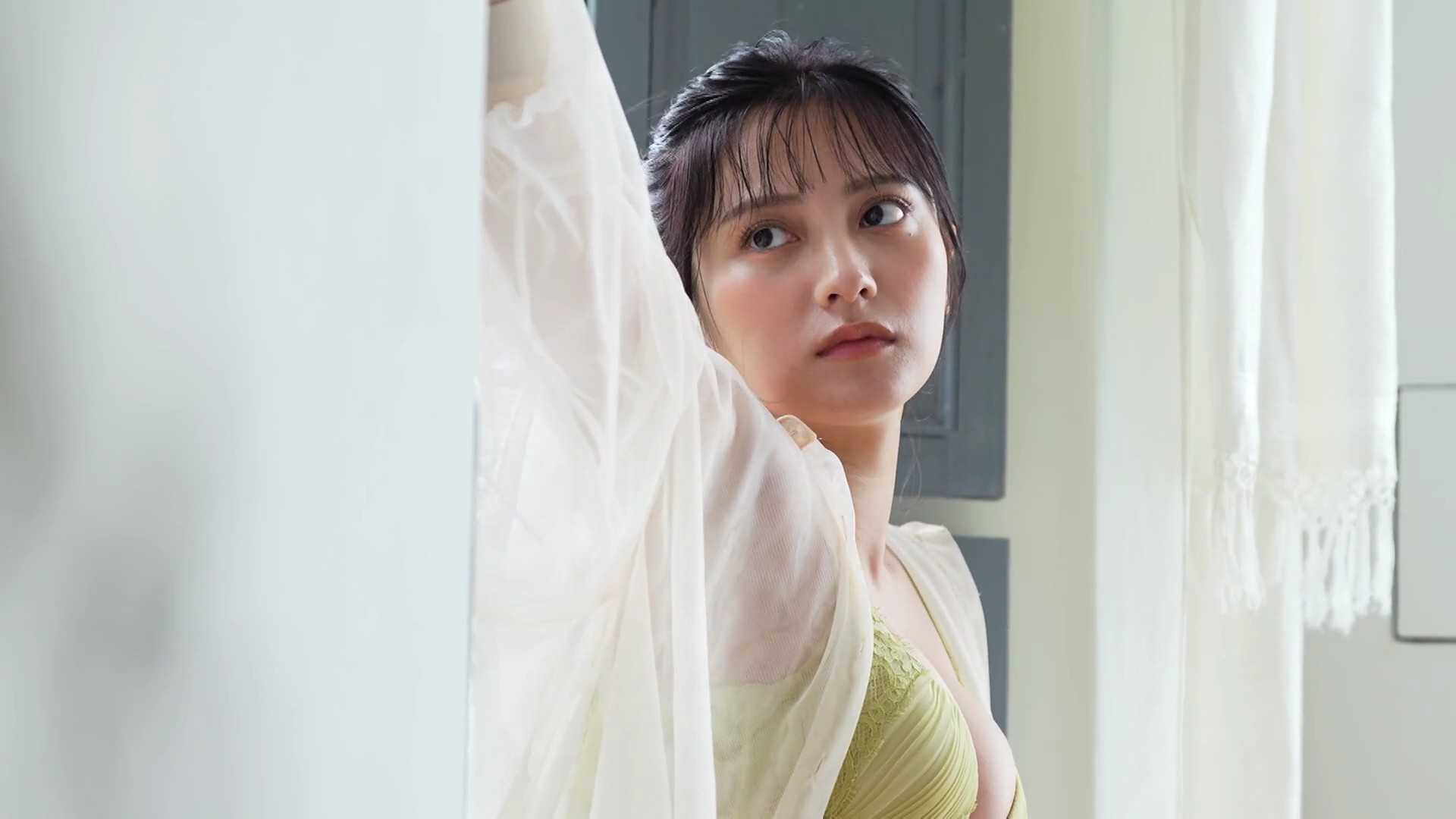 – ビスチェ風の白いランジェリー撮影に挑戦