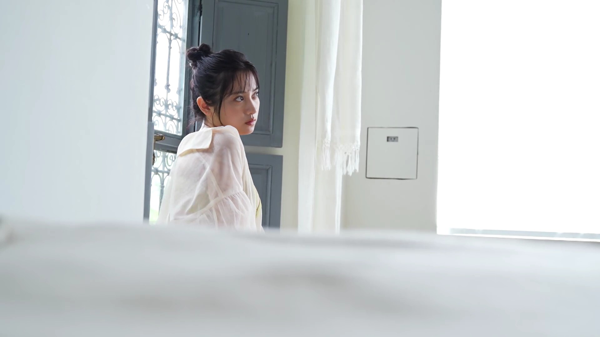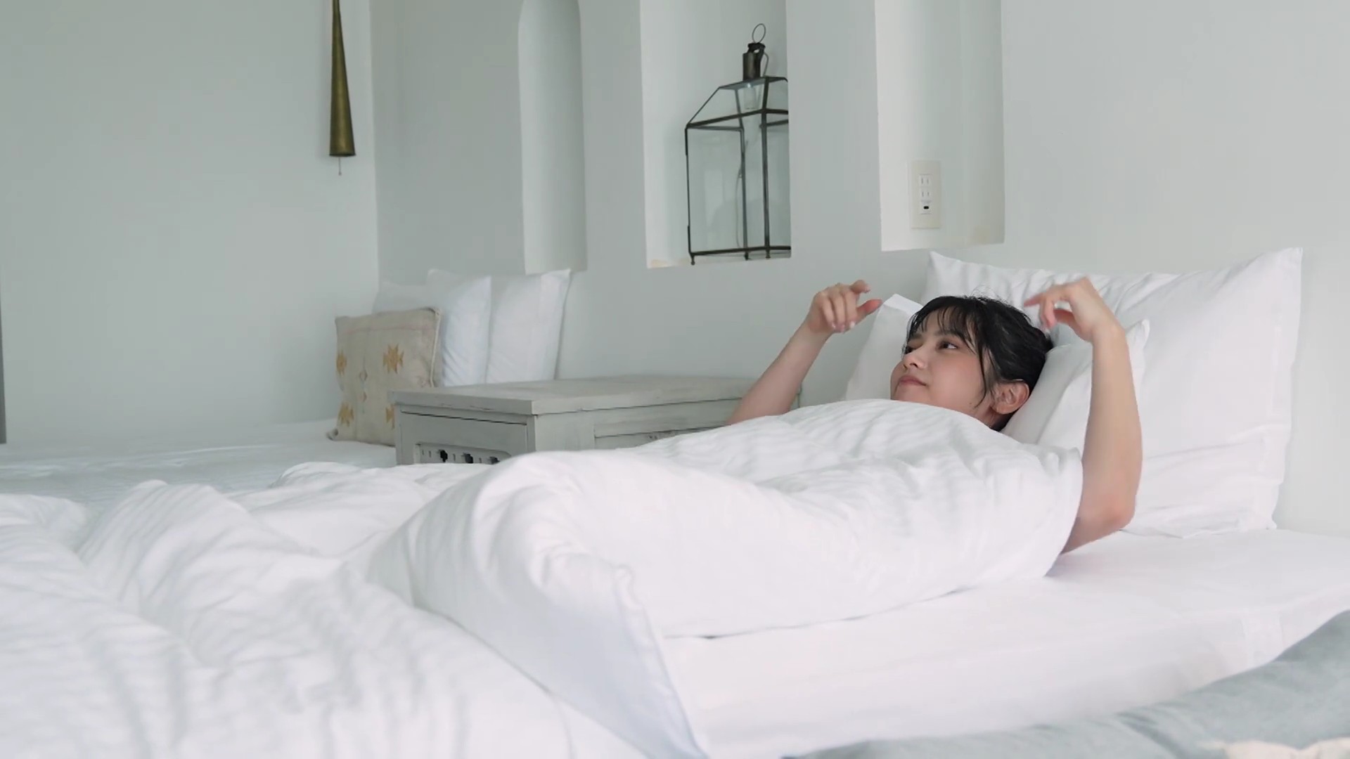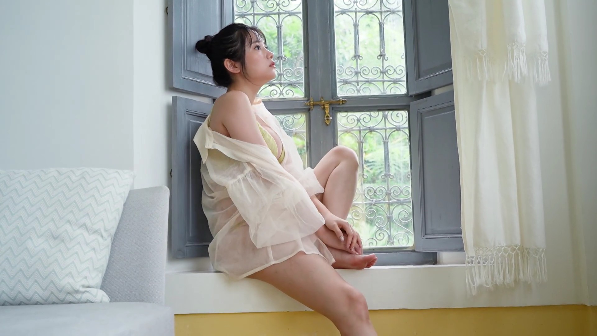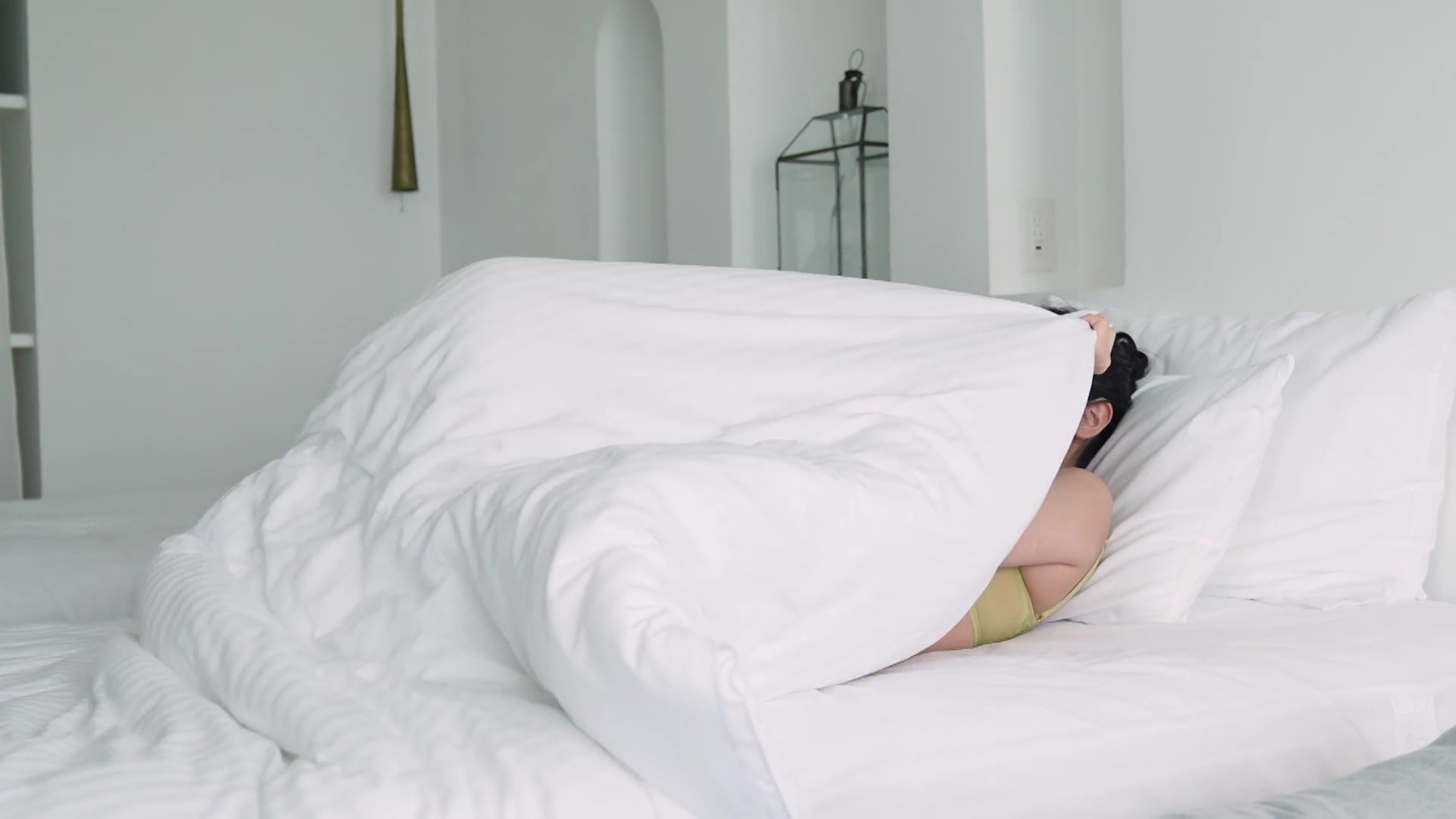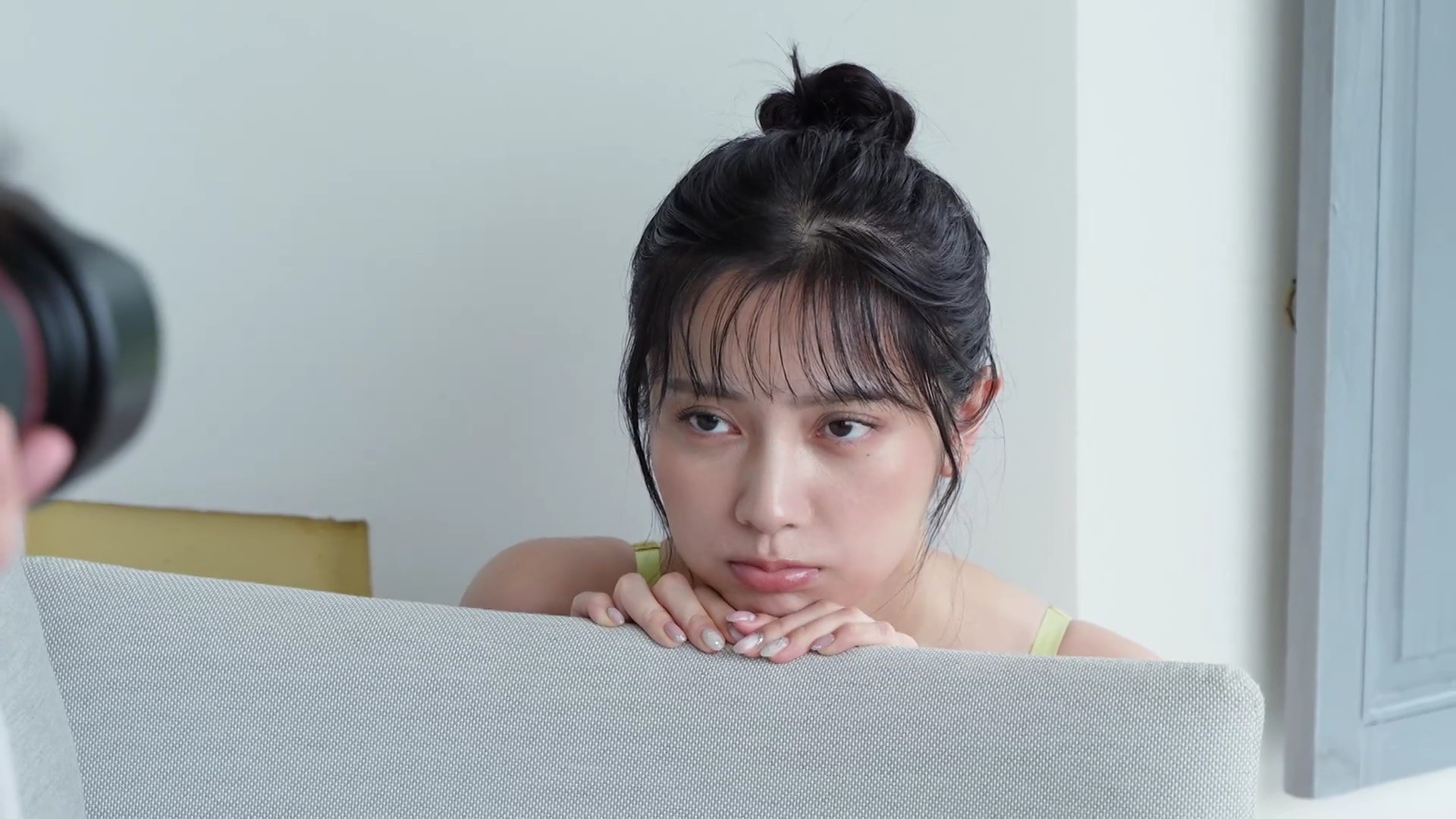 – ビスチェ風の白いランジェリー撮影に挑戦