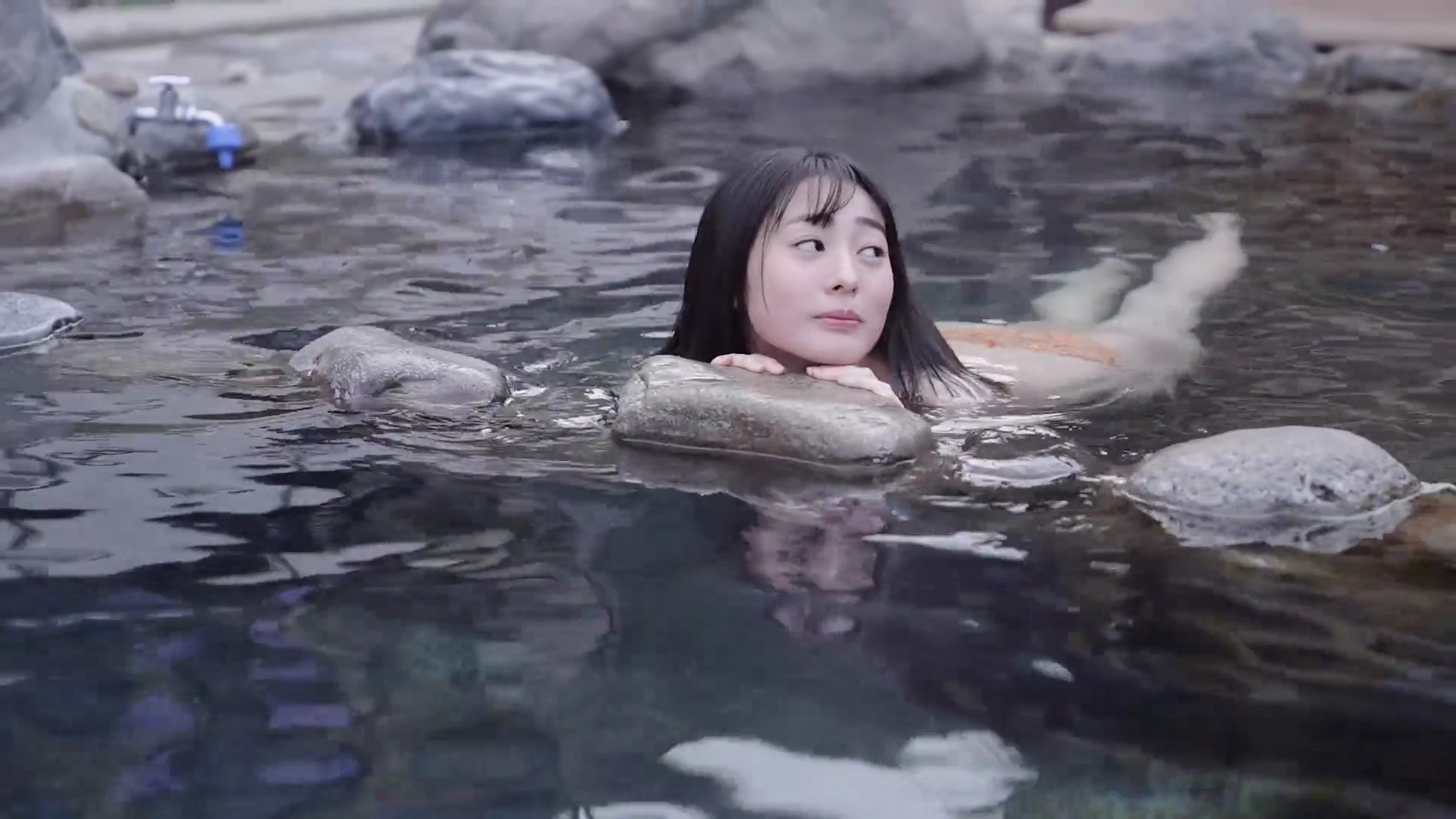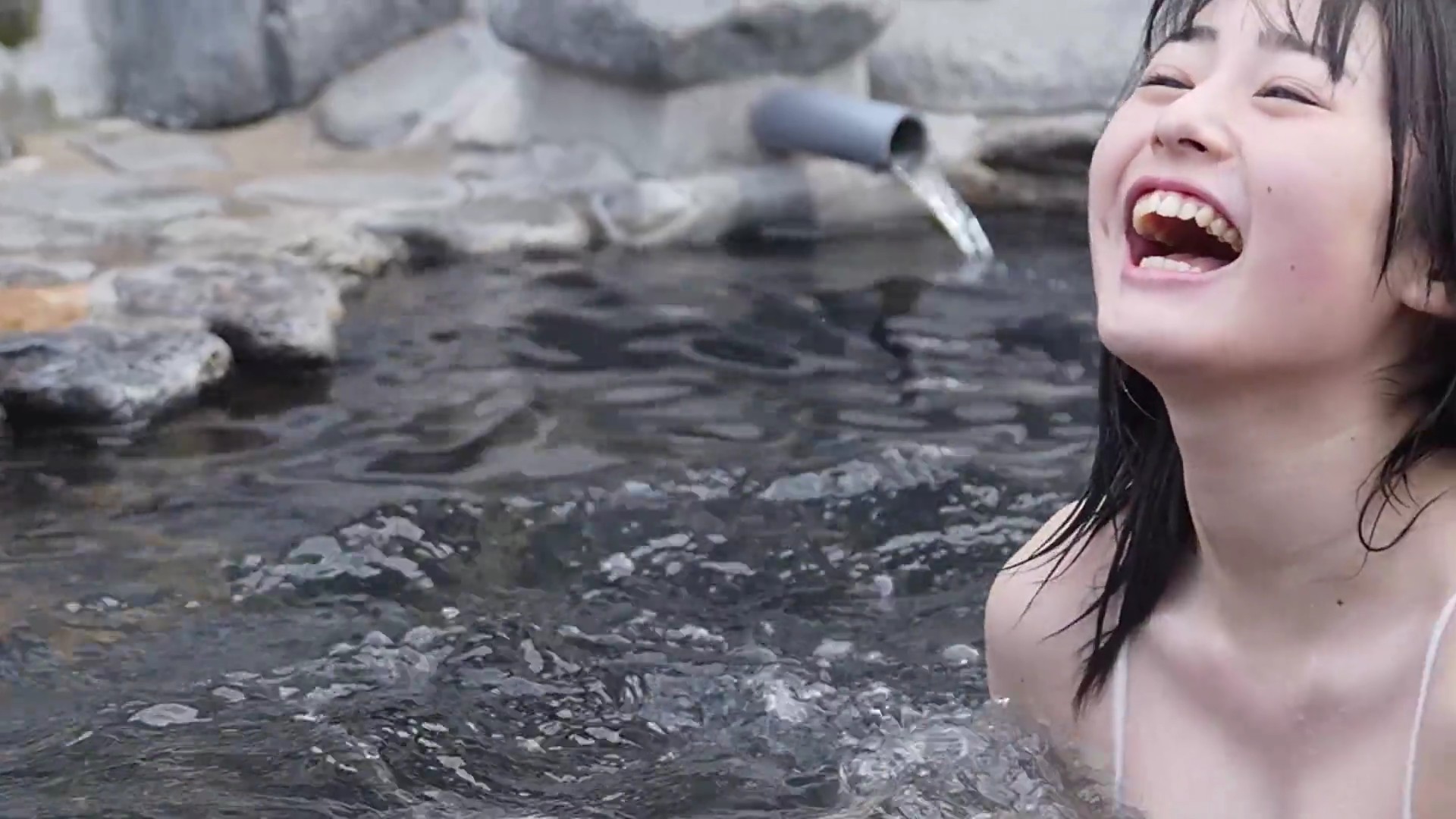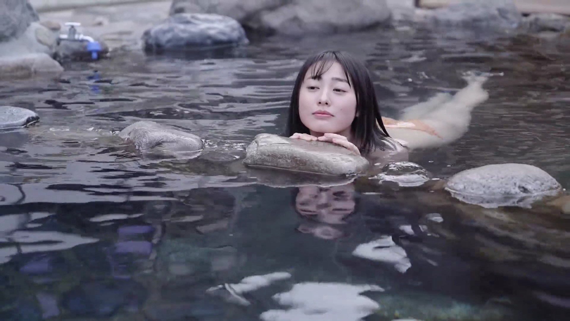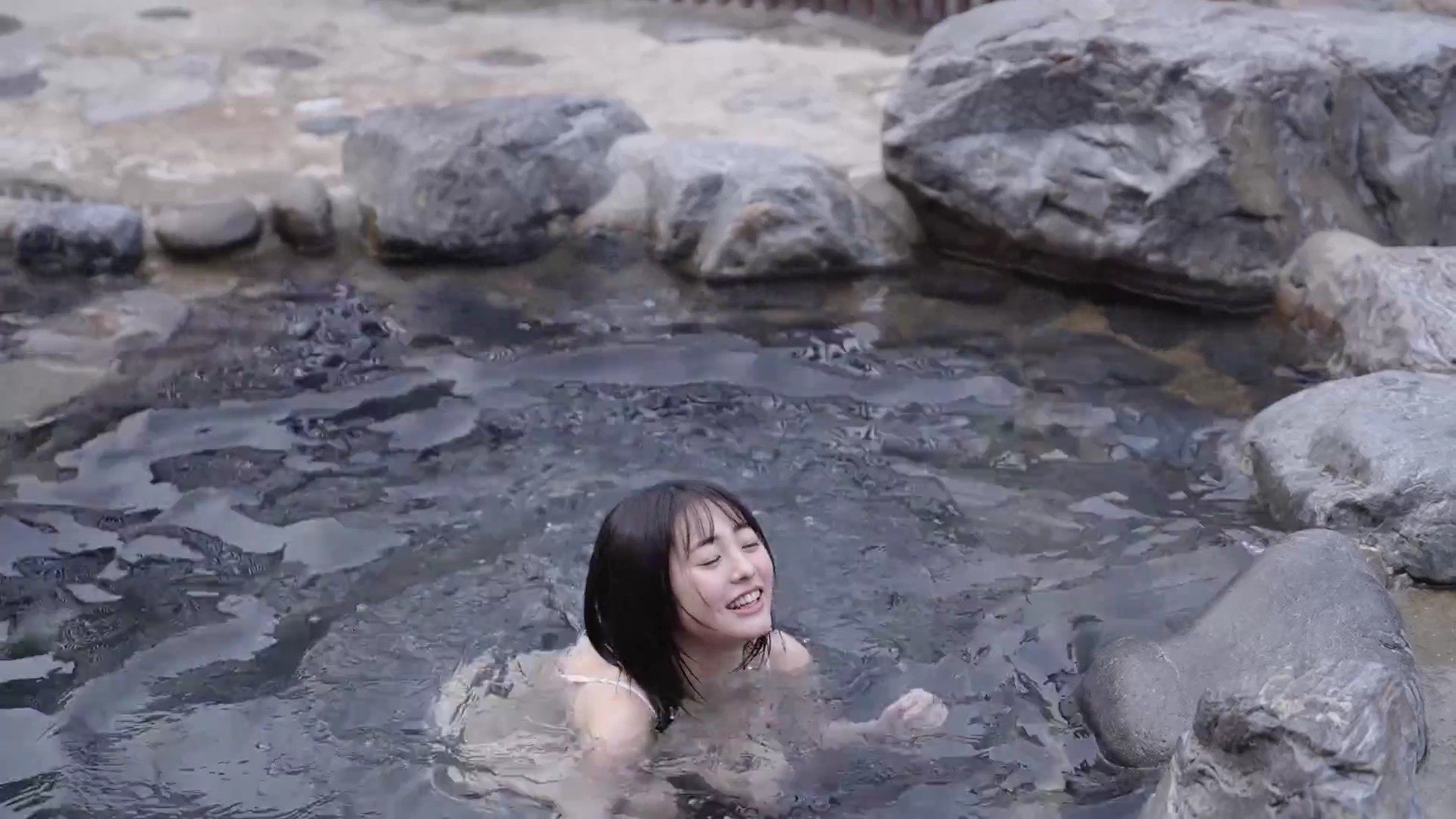 特に湯煙の中でのリラックスしたショットが印象的で、彼女の自然な美しさを引き立てています。