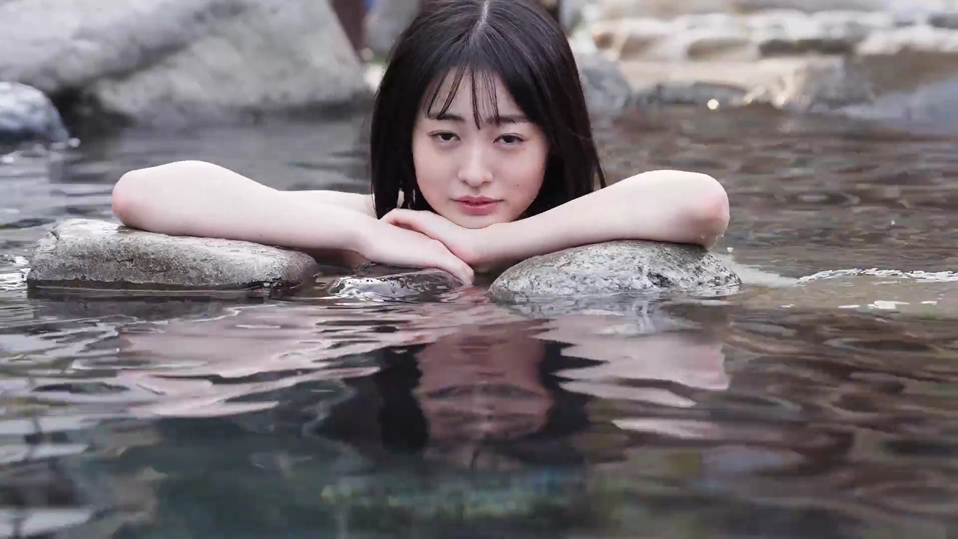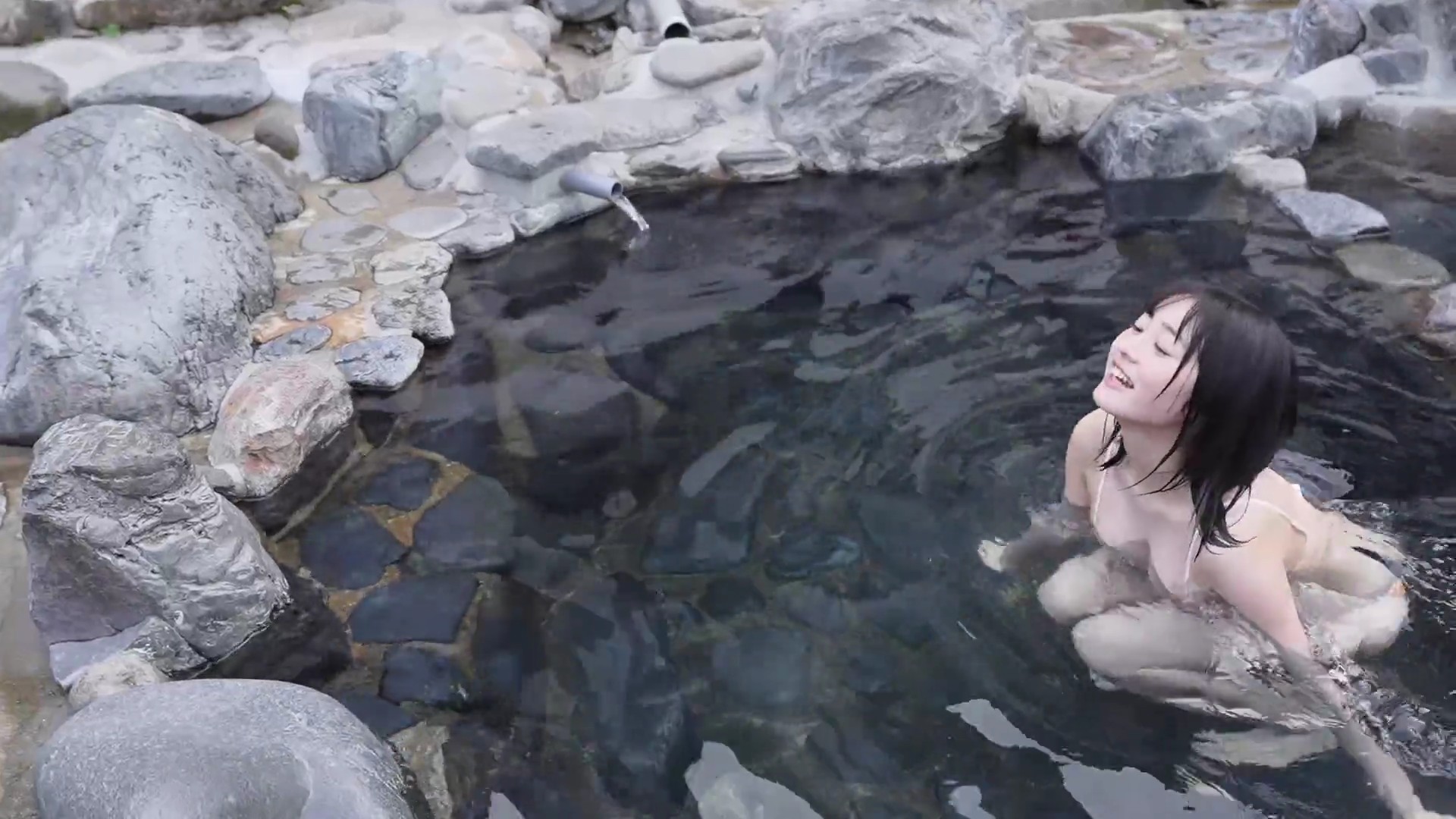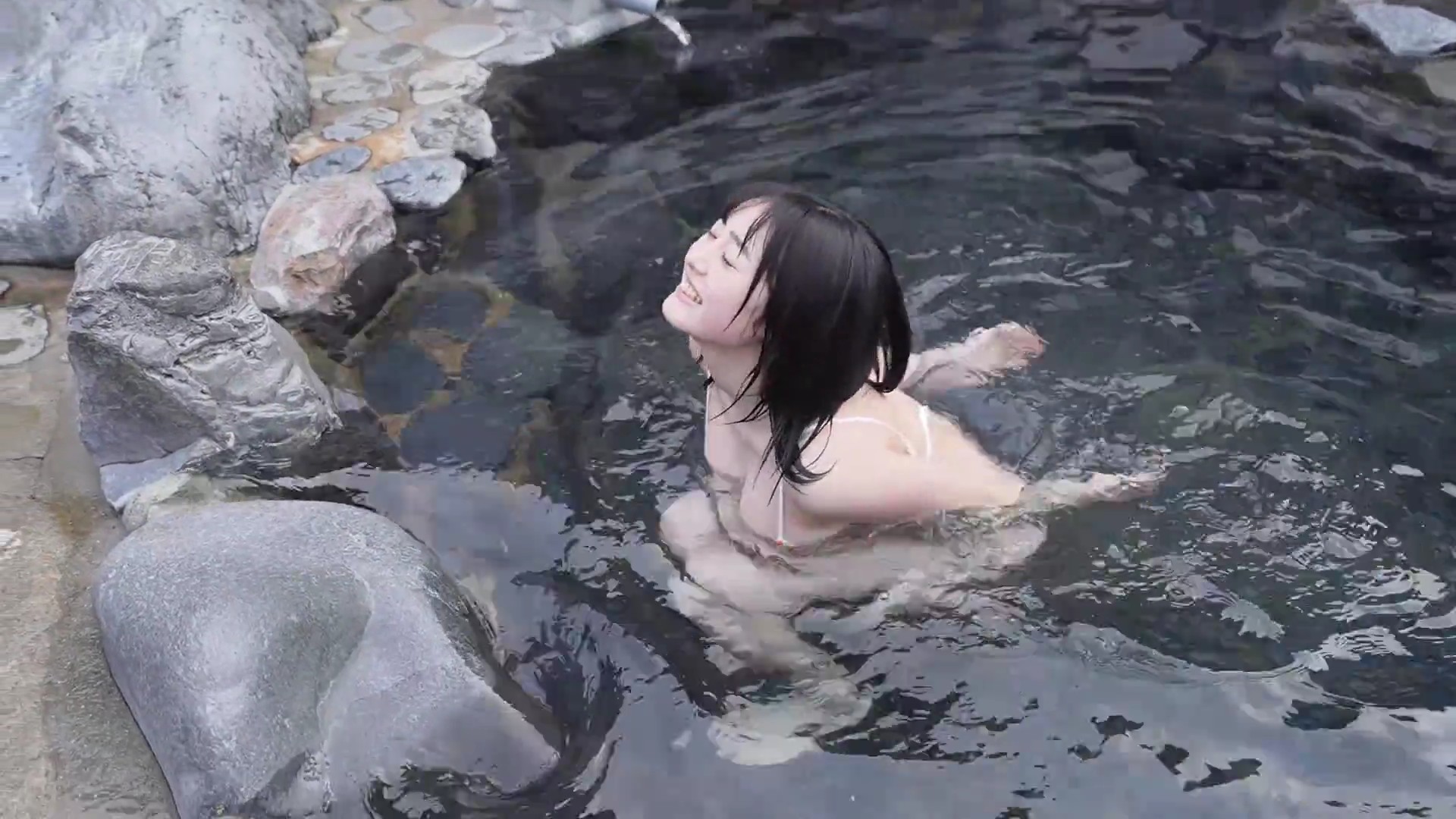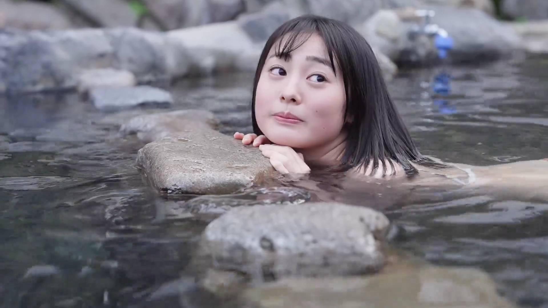 特に湯煙の中でのリラックスしたショットが印象的で、彼女の自然な美しさを引き立てています。