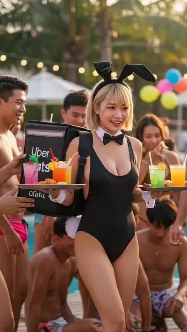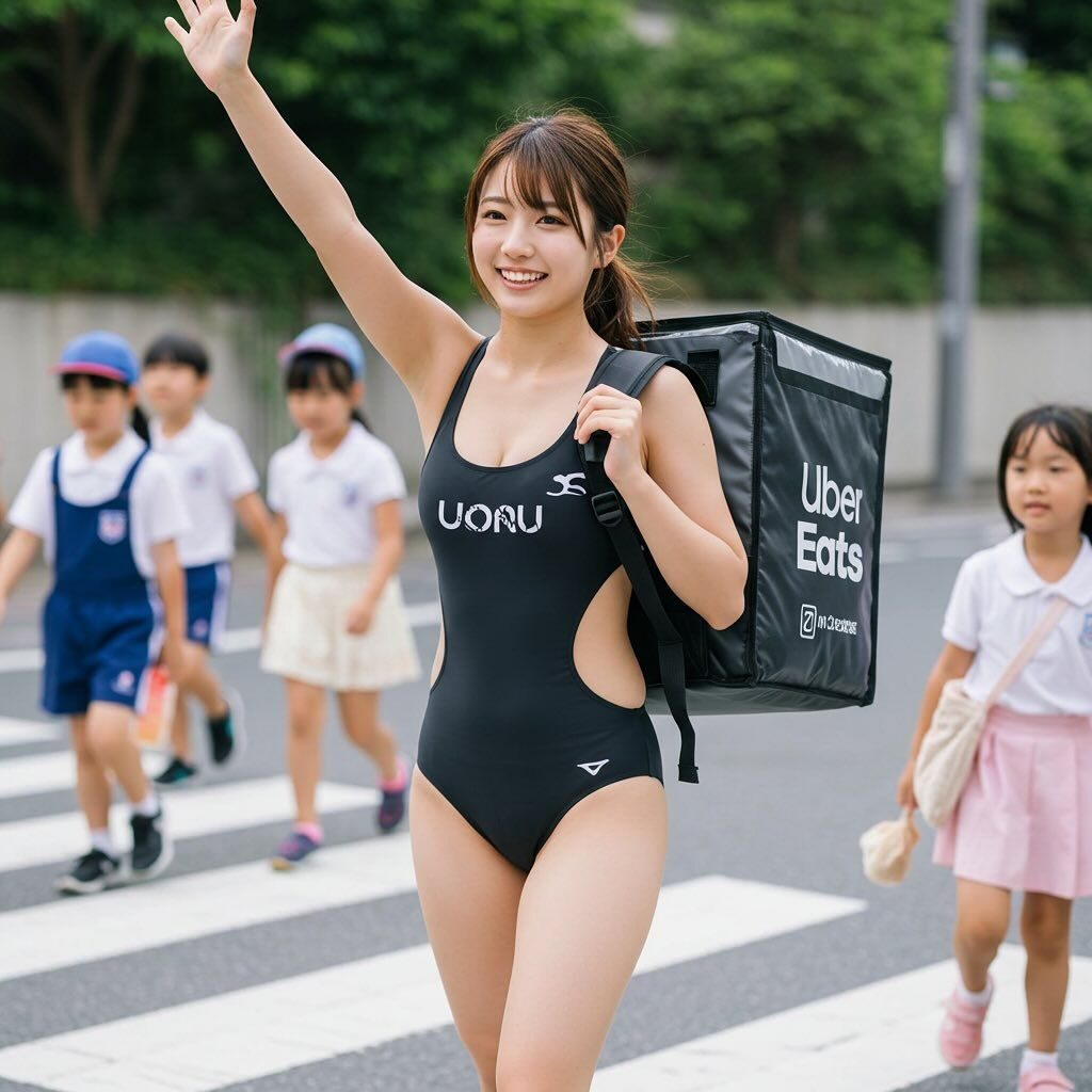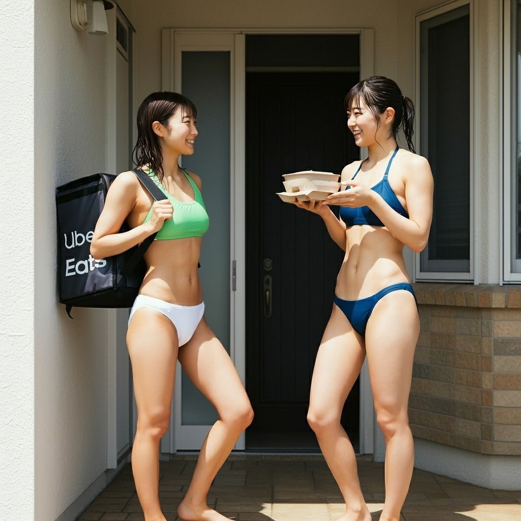 特に注目すべきは、水着スタイルでの配達を行うAIたちです。