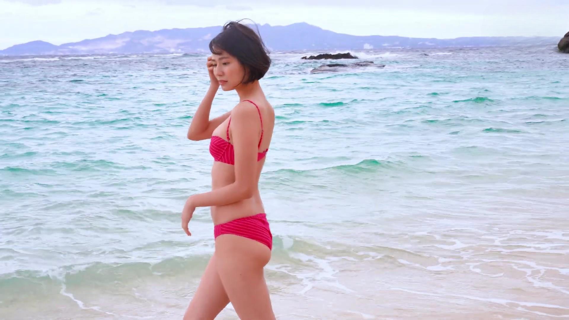 沖縄の美しいビーチと透き通った海は、新谷あやかの持つナチュラルな美しさを最大限に引き立てています。水着撮影は彼女のスタイルをより一層際立たせ、彼女の存在感を示しています。