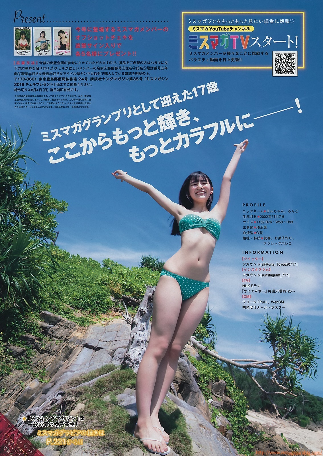 令和元年、ミスマガジン2019のグランプリに輝いたのは、多才な魅力を持つ豊田ルナでした。彼女は、子役としてのキャリアをスタートさせ、アイドル、タレントとしても活躍。NHK「すイエんサー」に出演し、その愛らしい笑顔と瑞々しいスタイルで多くのファンを魅了しました。また、彼女の抜群のトークスキルも注目され、グラビアではその多彩な表情が光りました。