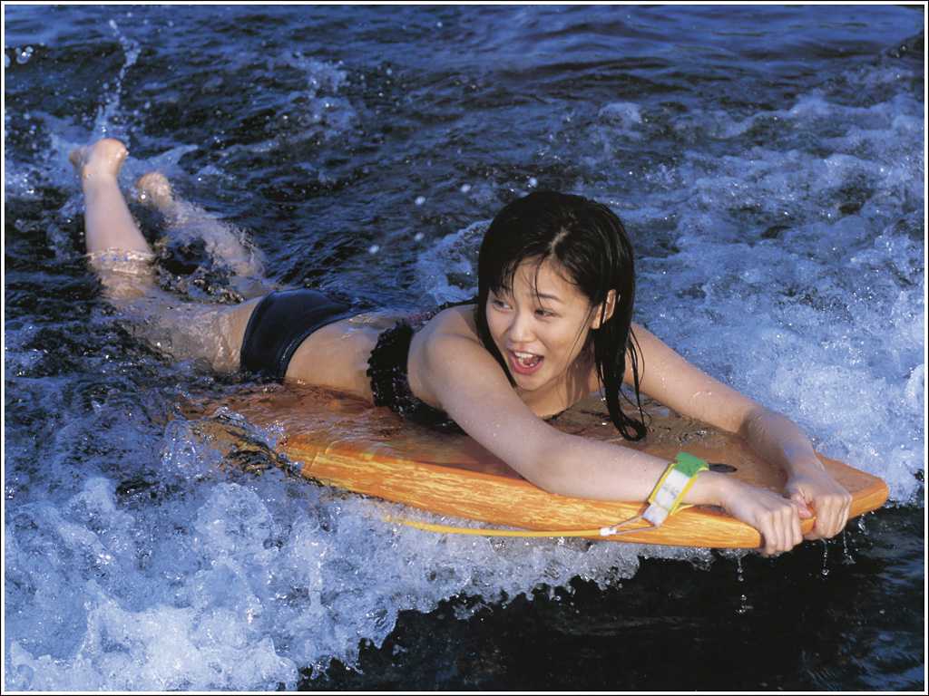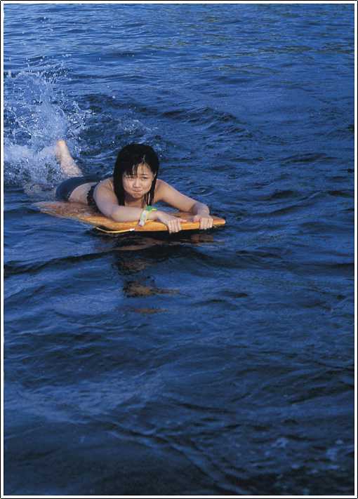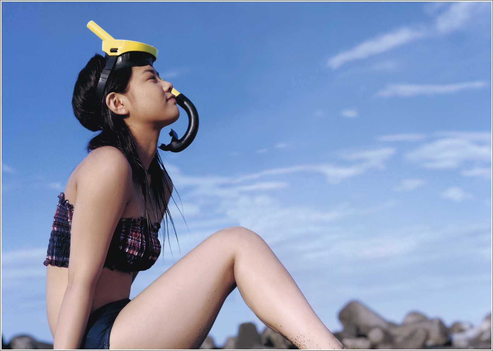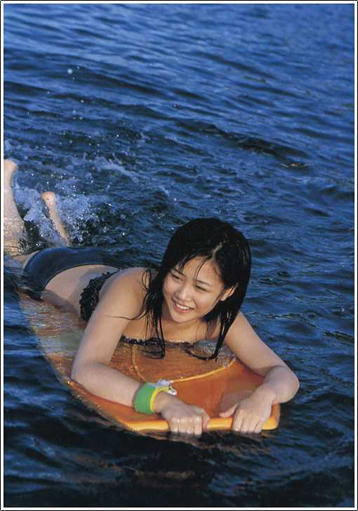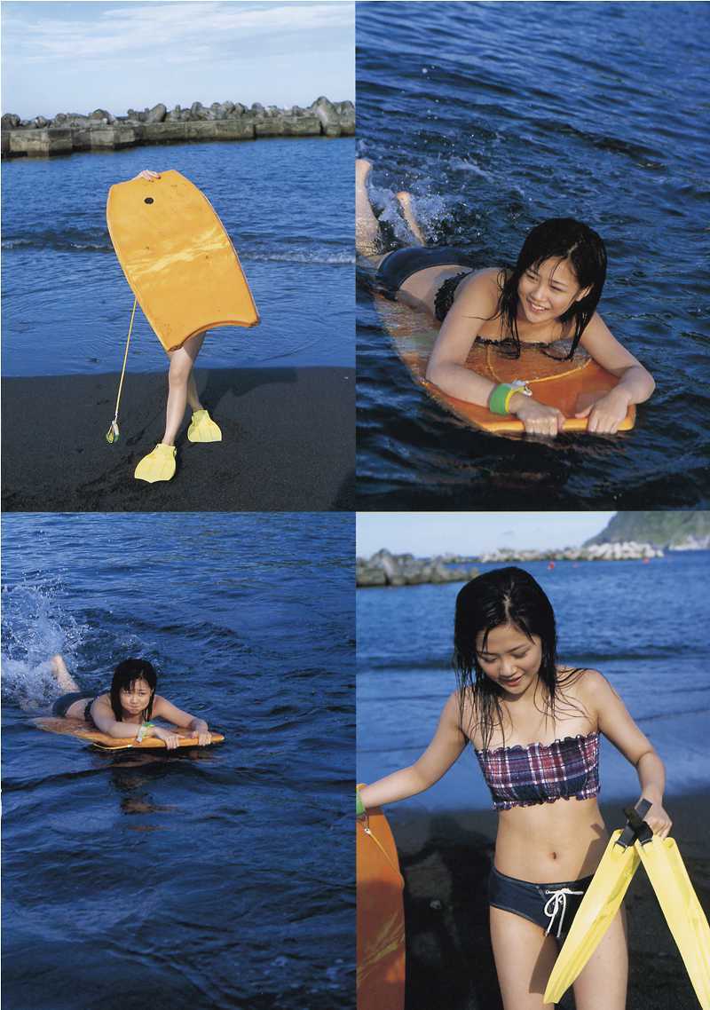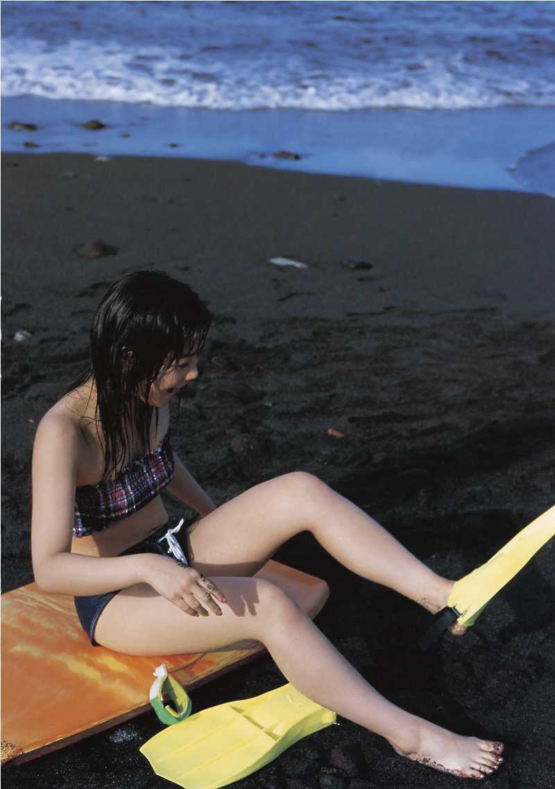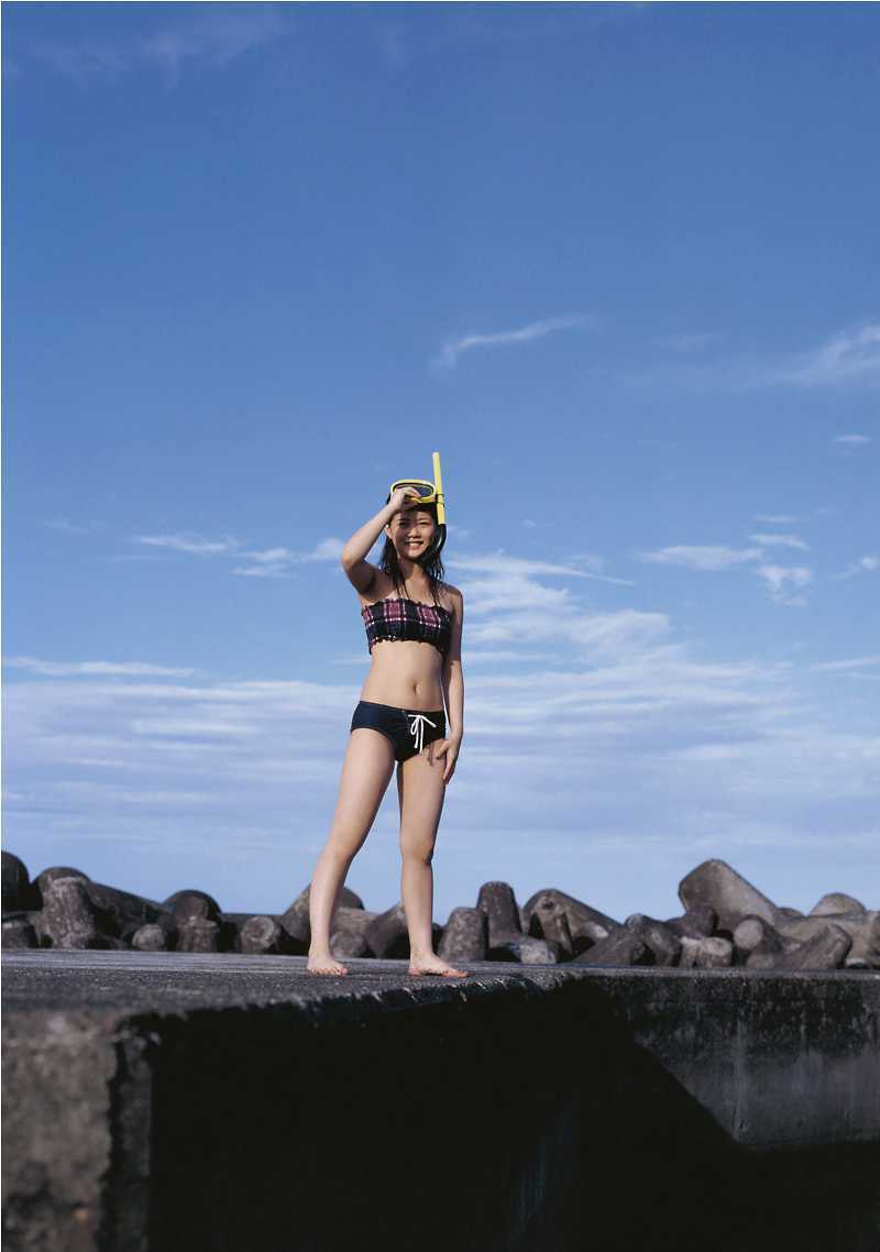 神奈川県横浜市出身の新垣里沙は、ビキニ姿で自然体の表情を見せ、ファンを魅了。黄緑をイメージカラーに持つ彼女の明るい性格が、水着グラビアを通じても伝わってくる。身長155cmという彼女のスタイルも、ビーチや自然の中で際立っていた。