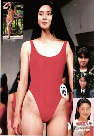 96年のNHKの朝ドラ「ひまわ り」に主演し、全国区に名を書かせ た松嶋菜々子だが、もともとは水着系キャンギャル(92年度/旭化成)のひとりだ。だから、彼女の魅力であるスレンダーでバランスのとれたボディというのは、オトコ目 線に通うだけのエロさがあったわ けだ。 一見清純そうでおしとやかなお 姉さんがハイレグ水着を着ている姿に、オトコたちはアテられたの だから。だが、似たようなモデルたちが場末のRQあたりに埋没し いくのと違い、彼女には転機、朝ドラのヒロインに抜擢という幸運が転がり込む。もちろん初主演で演技なんかまるでなっちゃいない。ところがそれが許されるのがNHK の朝ドラ。「あまちゃん」 の能年玲奈もそうだが、大根芝居 をされたところで視聴者はへっちゃら。朝ドラのファンは前性が強 いのだ。「ひまわり」の松嶋も同様 に、むしろ「誰?このきれいな 人?」的な心理で人気を得ていく。 美人だけど鼻につかない親しみや すいキャラもあっただろうが、朝ド ラ発進型の女優となれたことは、 何よりも彼女にとって幸運だったはずだ。