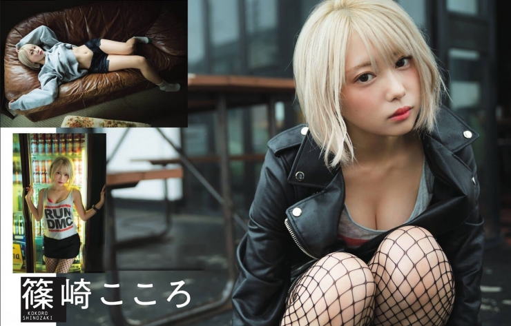 トランジスタグラマーなボデ ィと鮮やかな金髪ショートの髪 型が目を惹く篠崎こころ。