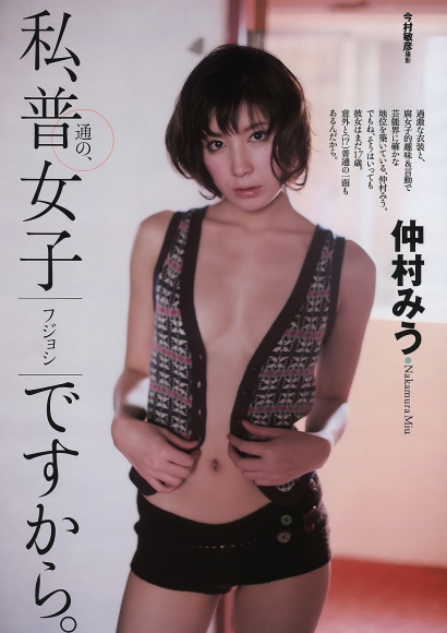 グラビアアイドル 仲村みう 水着グラビア画像 自分、普通の女子ですから。18歳に、 なったばかり とは、 思えないって言われる。2009 でも、別に背伸びしてるわけじゃない。 ただ、自然に振舞ってるだけ。 色気があるとか、目力が強いとか、 それは見た人が決めること。 この写真の感じは、 自分にとっては普通。 必要以上に何かをしたりはしてない。 特に変わったことをしてるつもりも... 2019.11.22 グラビアアイドル